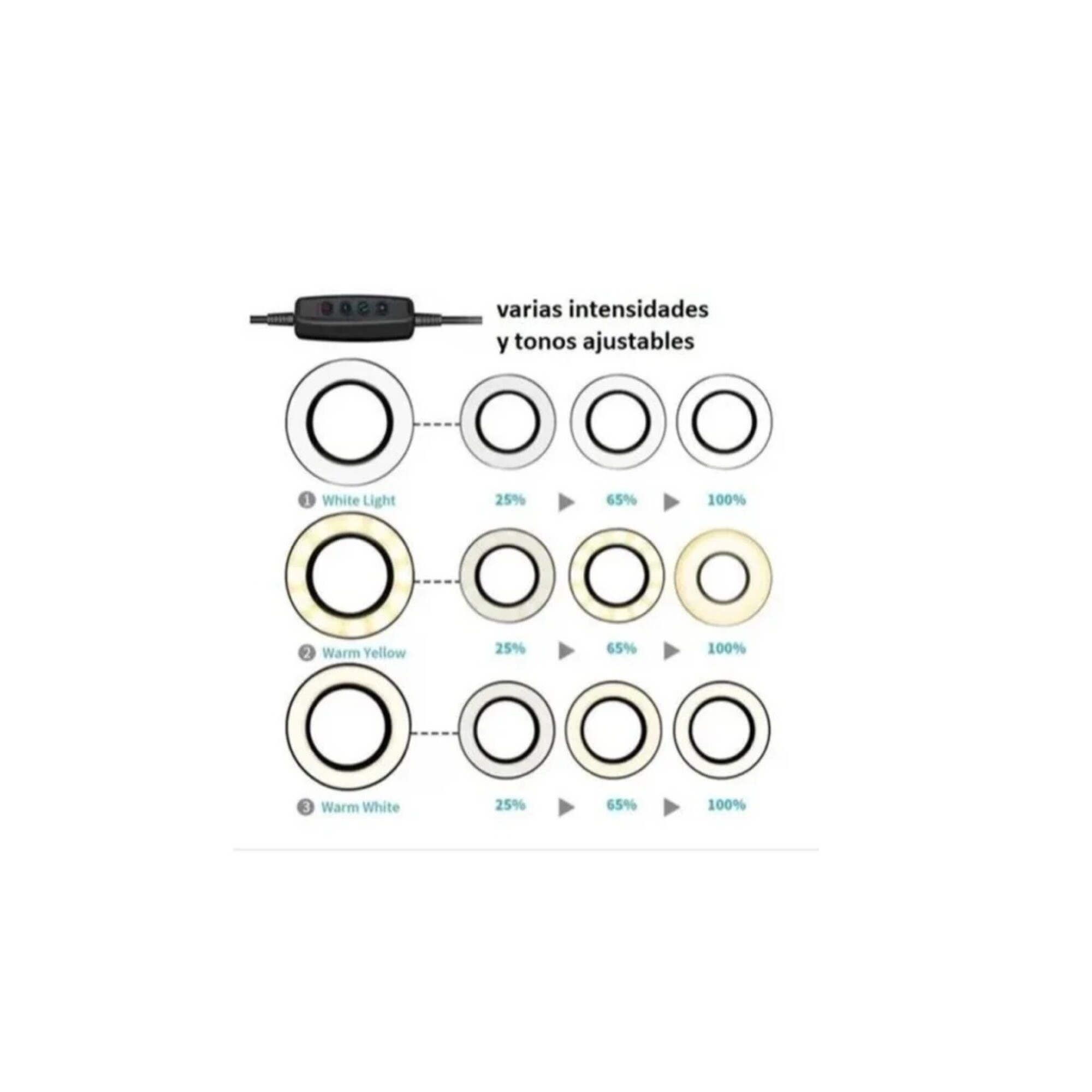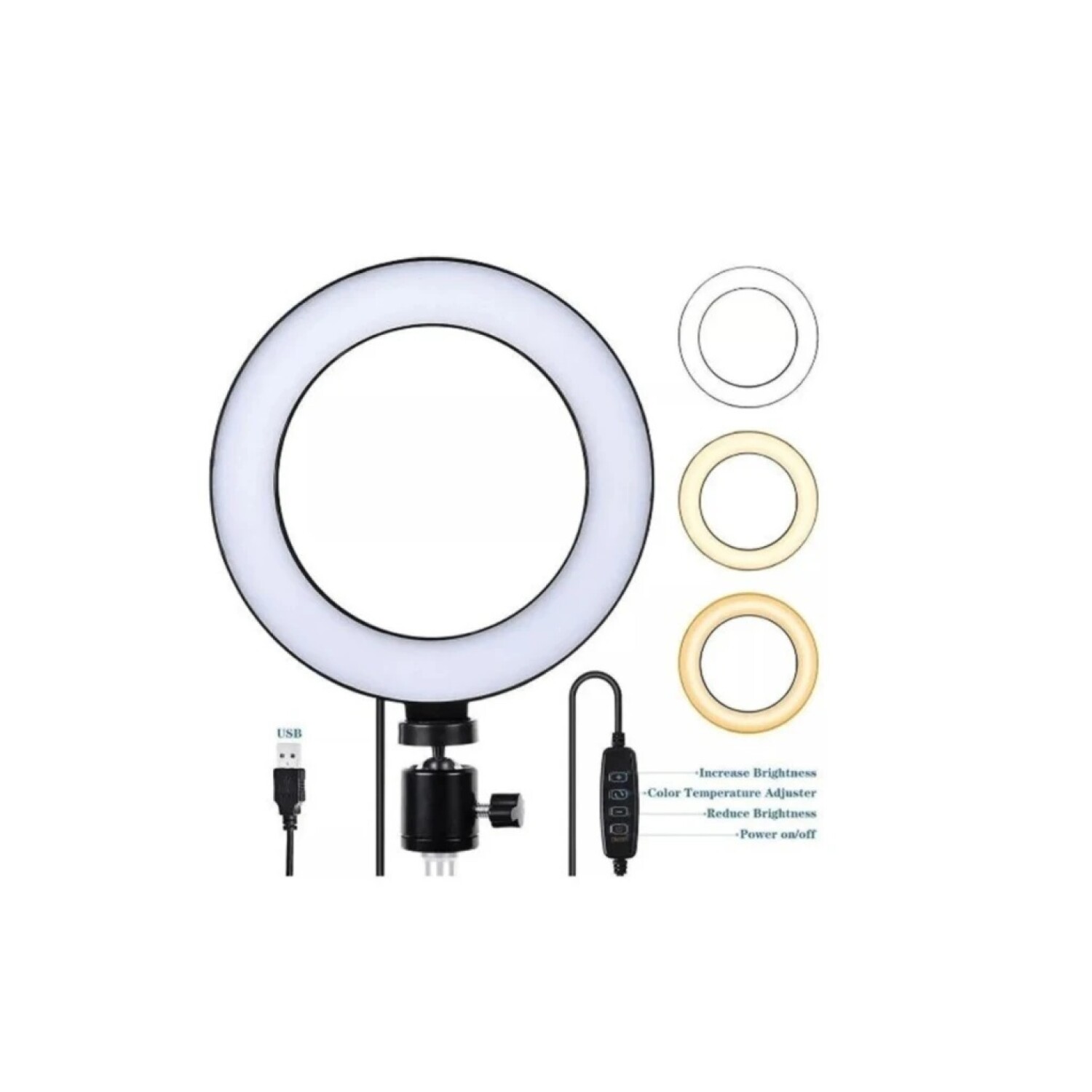 Aro LED profesional. Varios tonos e intensidades de luz. 16 cm diámetro,
