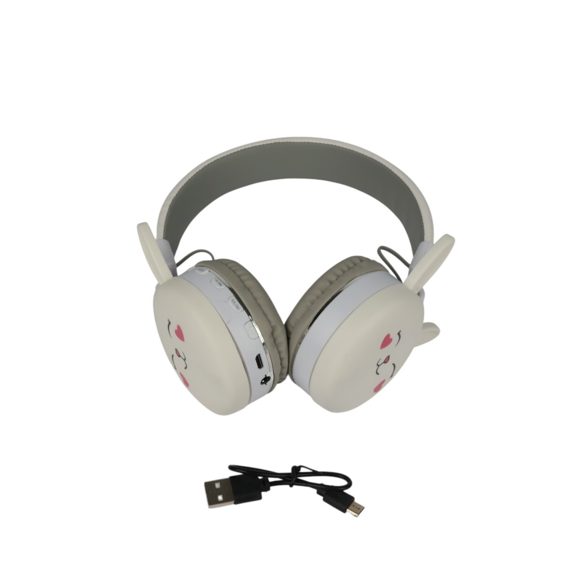 Auriculares Bluetooth inalámbricos con un divertido diseño de conejo en color blanco, ideales para niños. Son cómodos, ligeros y con limitador de volumen seguro para proteger la audición infantil. Perfectos para escuchar música, mirar videos o hacer videollamadas con estilo y diversión.