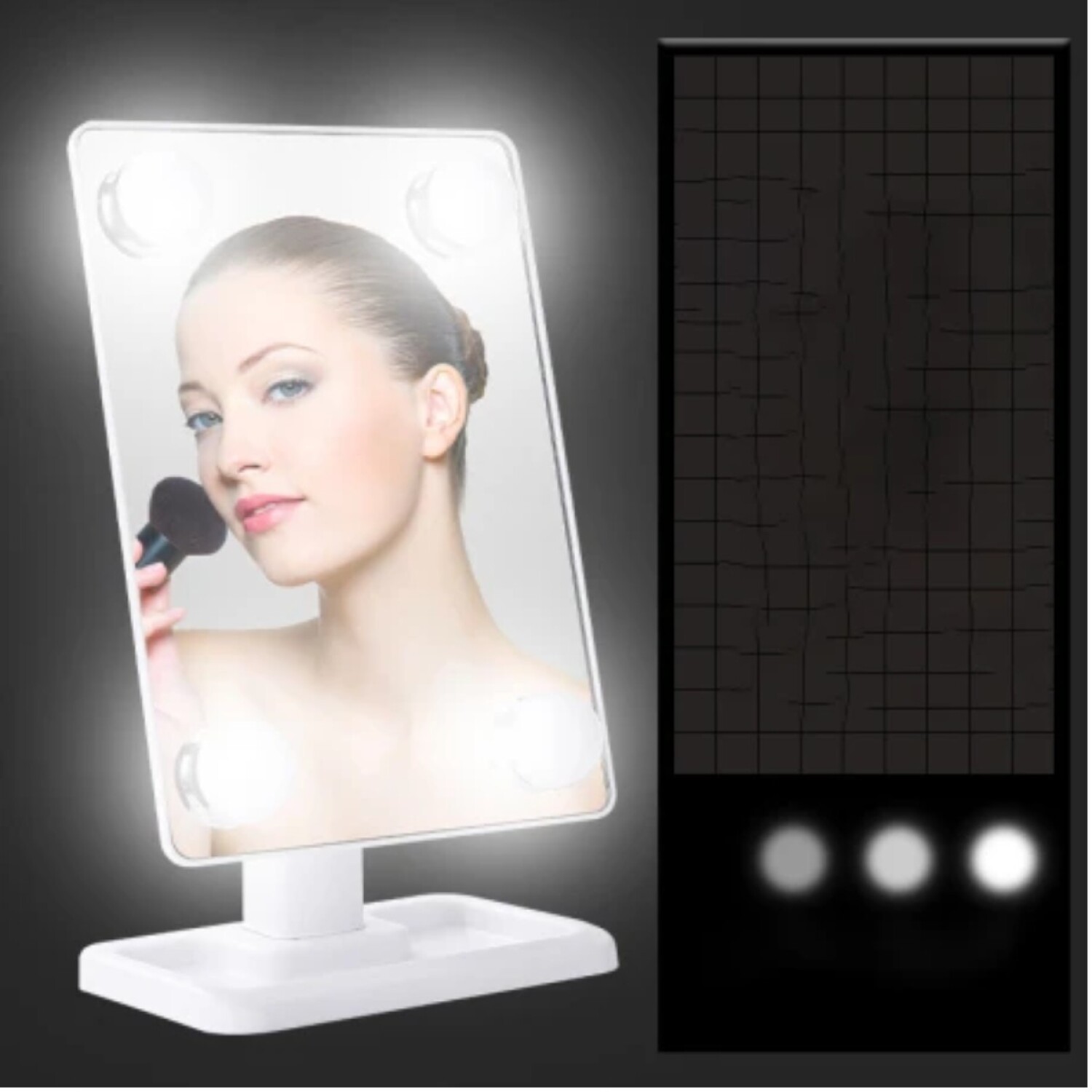 ESPEJO CON ILUMINACIÓN TÁCTIL PARA MAQUILLAJE INTENSIDAD AJUSTABLE