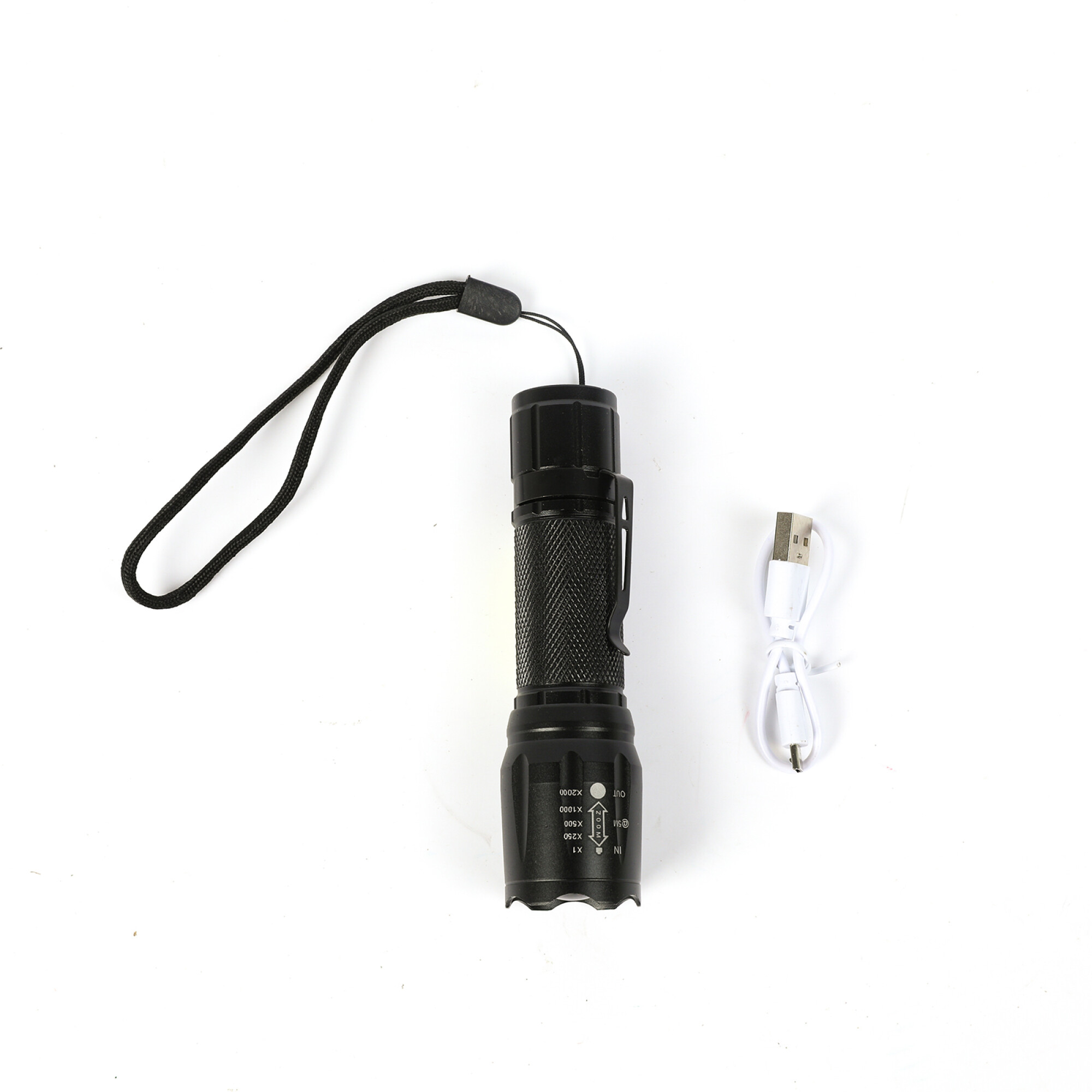 Linterna Led Recargable USB aluminio con zoom incluye estuche