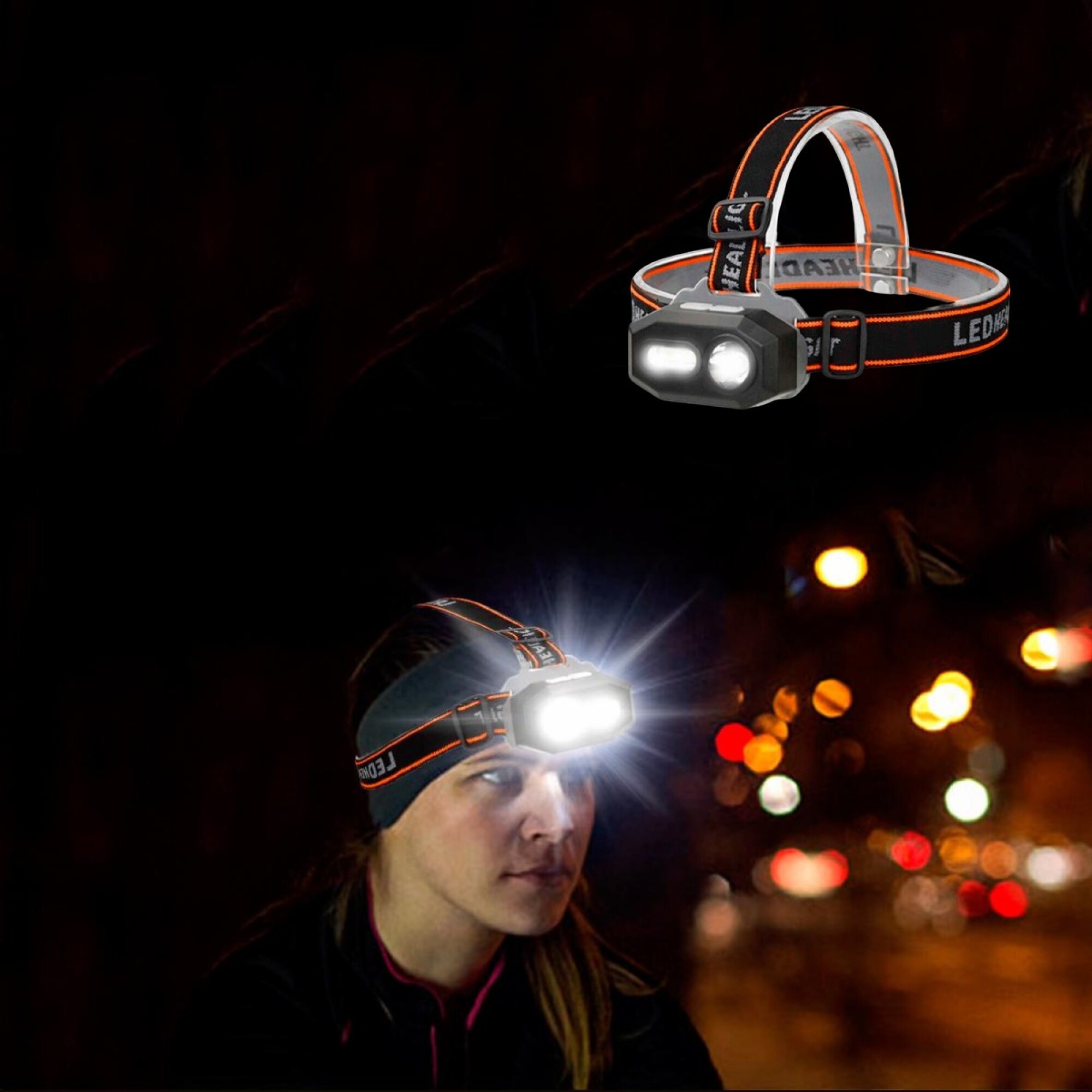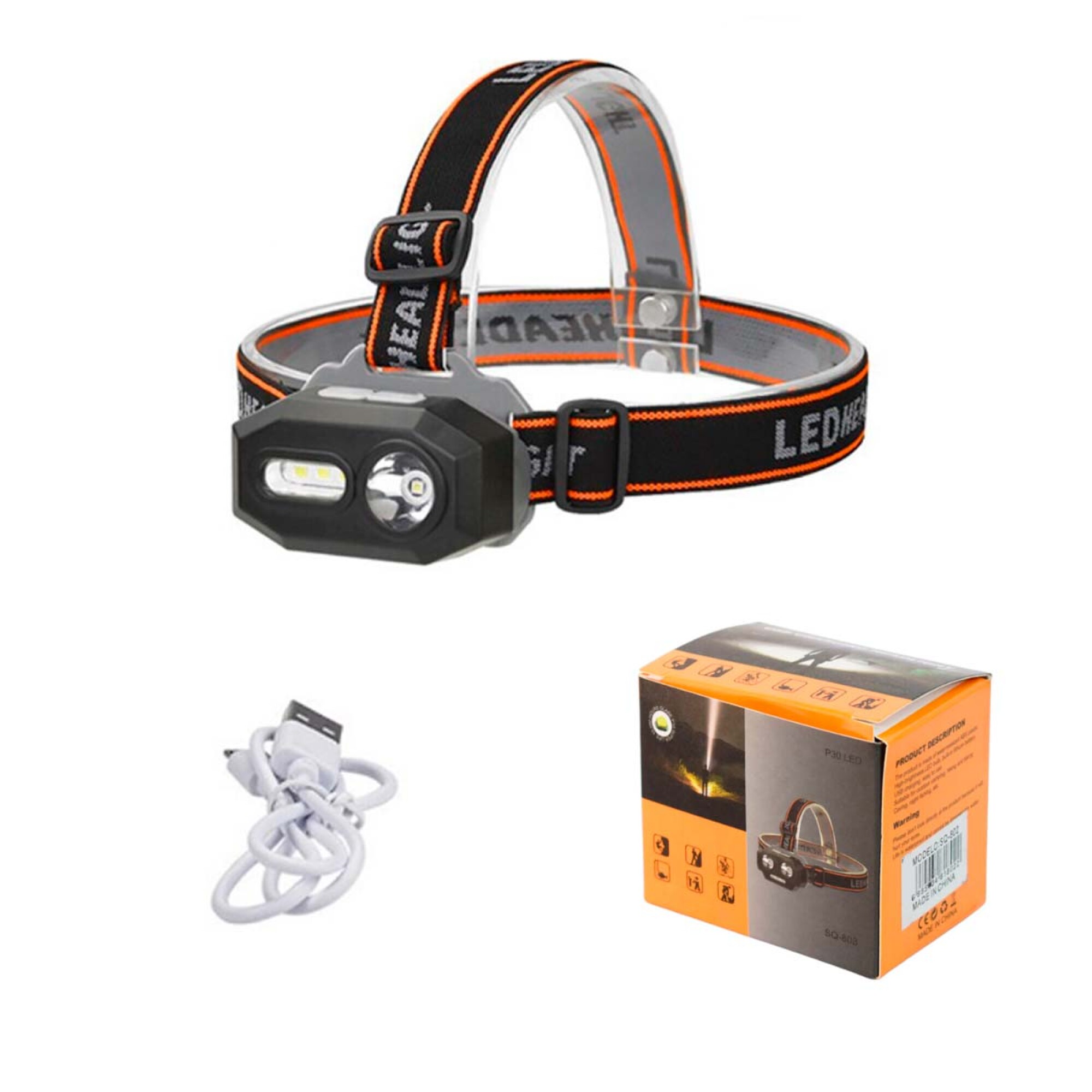 Linterna Minero Doble led recargable USB con vincha para cabeza