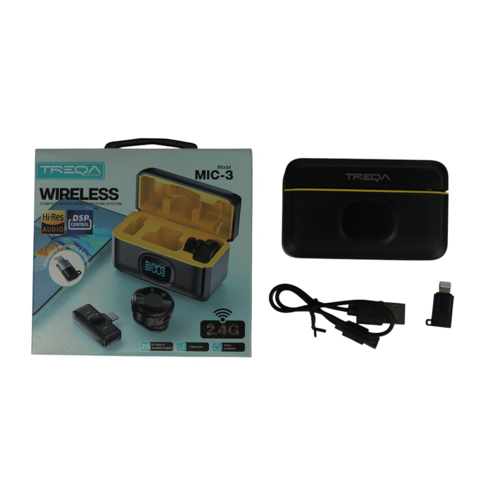 Set de micrófonos inalámbricos de solapa con estuche de carga portátil, ideales para entrevistas, Vlogs, clases y transmisiones en vivo. Con conexión plug & play sin apps, ofrecen audio claro y estable con alcance de hasta 33 m. Compatibles con Android (USB-C) y dispositivos iOS (Lightning).