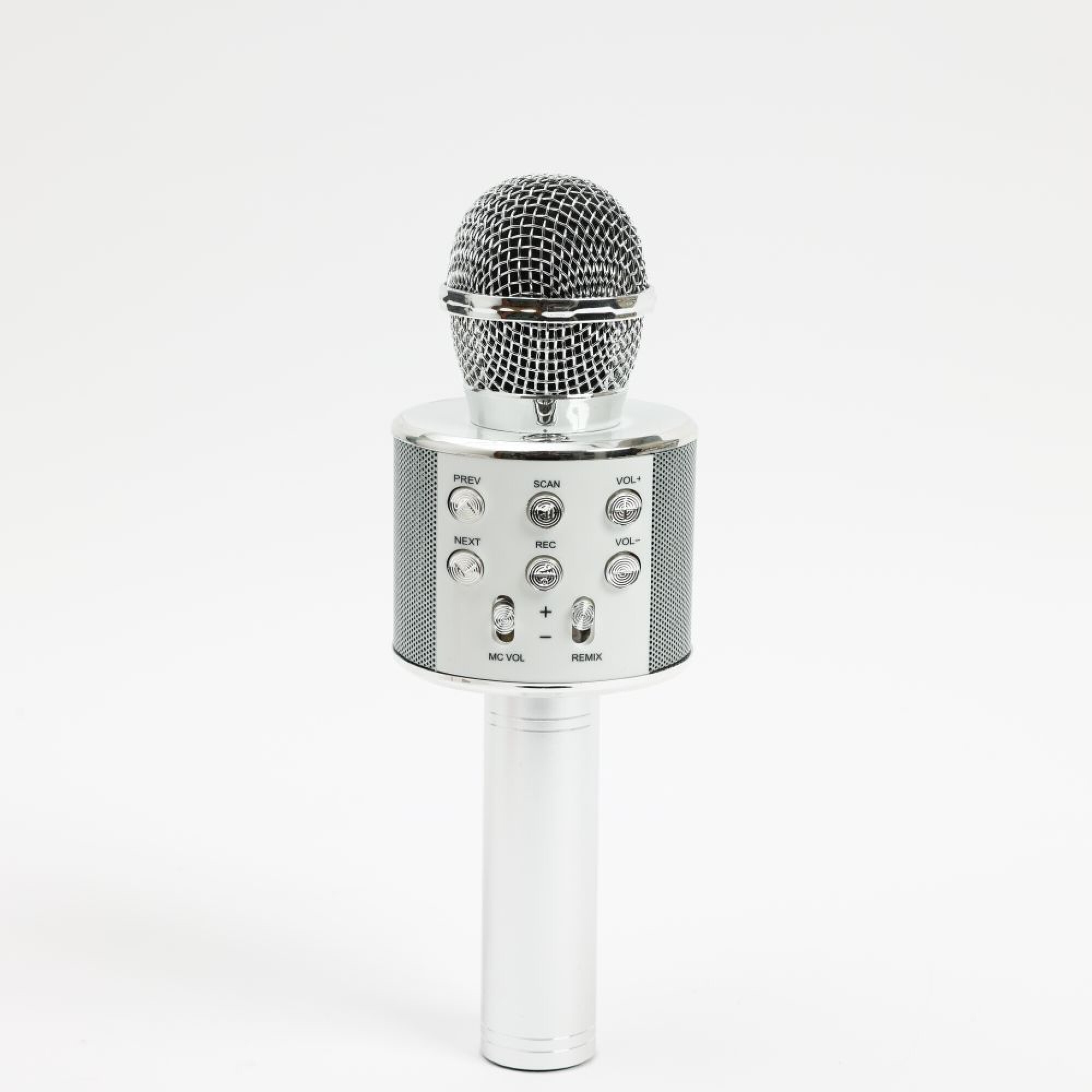 Micrófono WS858 económico con parlante y luces infantil GRIS