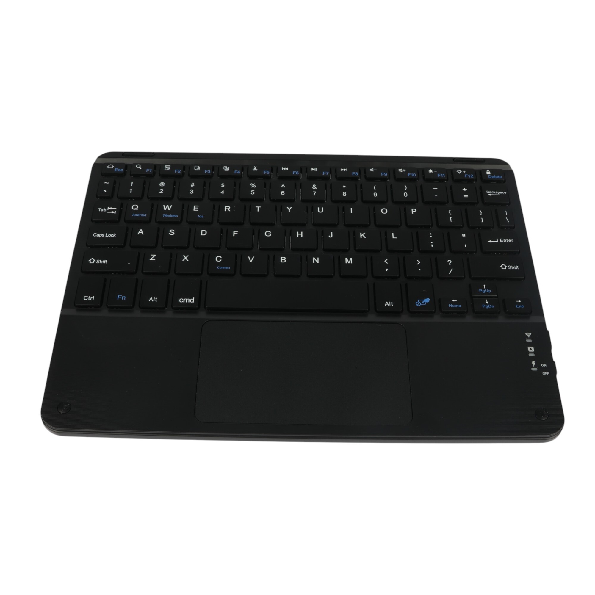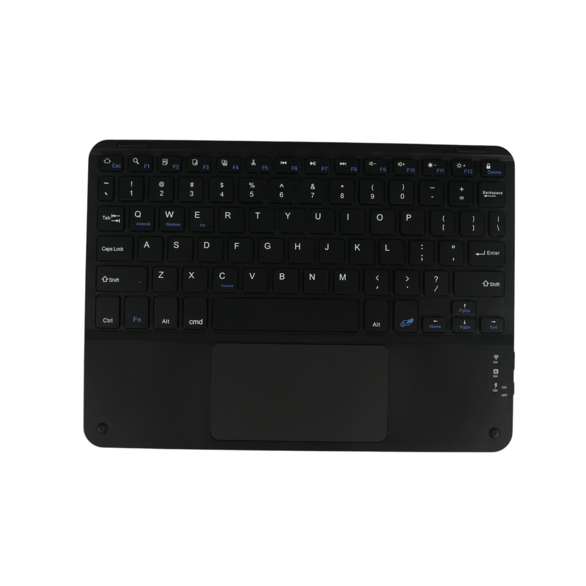 Mini teclado inalámbrico Bluetooth recargable en color negro, compacto y portátil para usar con notebooks, tablets, smartphones y smart TV. Su conexión rápida y estable permite escribir cómodamente en cualquier lugar. Incluye batería recargable para mayor practicidad y autonomía.