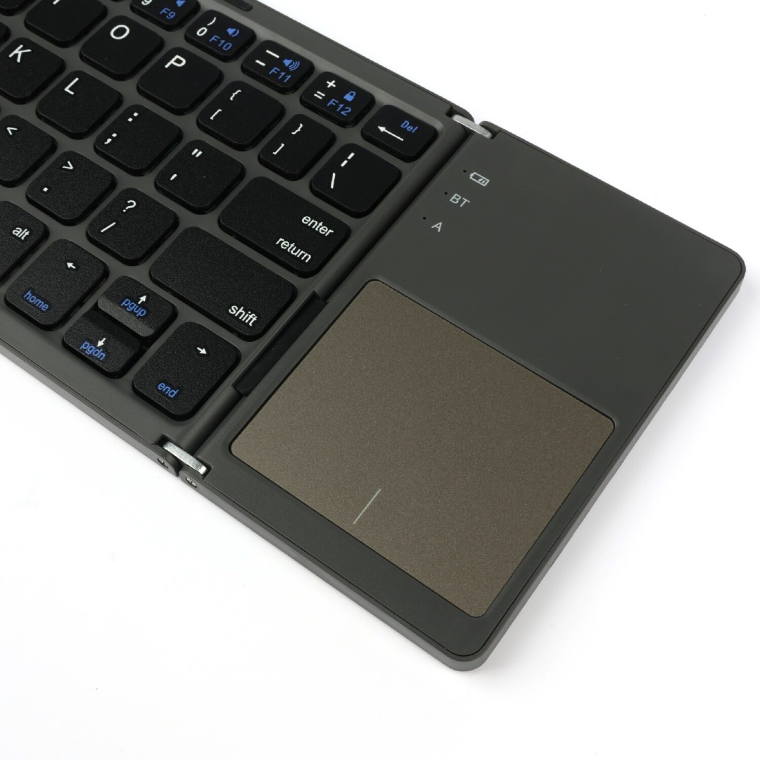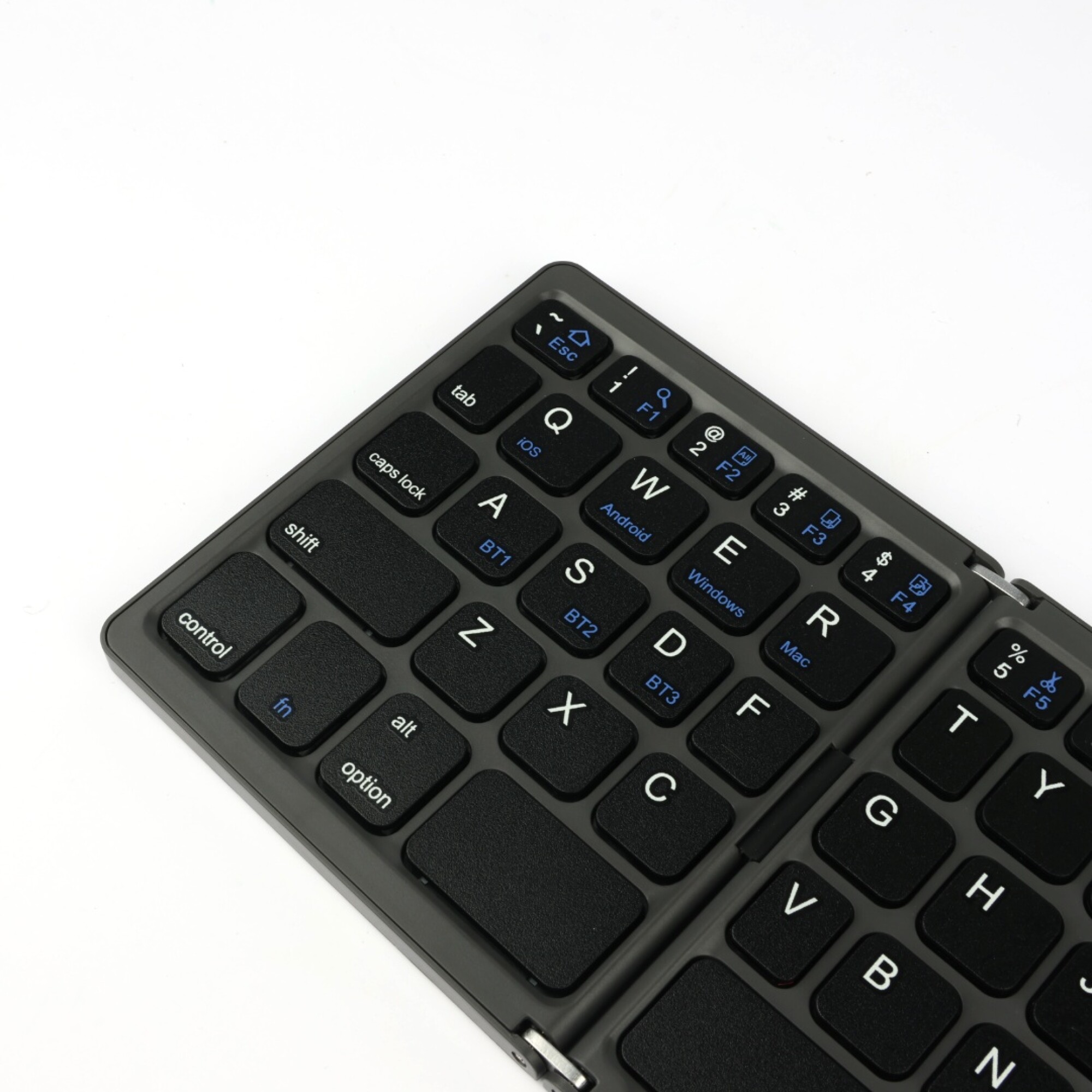 Optimiza tu espacio de trabajo móvil con nuestro teclado inalámbrico plegable en elegante acabado negro mate. Diseñado para ofrecer una experiencia de escritura fluida y silenciosa, este teclado utiliza tecnología de interruptores de tijera (scissor-switch) que garantiza precisión en cada pulsación. Su estructura bi-plegable lo reduce al tamaño de un smartphone, facilitando su transporte en bolsillos o mochilas. Gracias a su conectividad Bluetooth 5.1 estable, para convertir tu tablet o teléfono en una estación de trabajo eficiente durante viajes, reuniones o café-working.